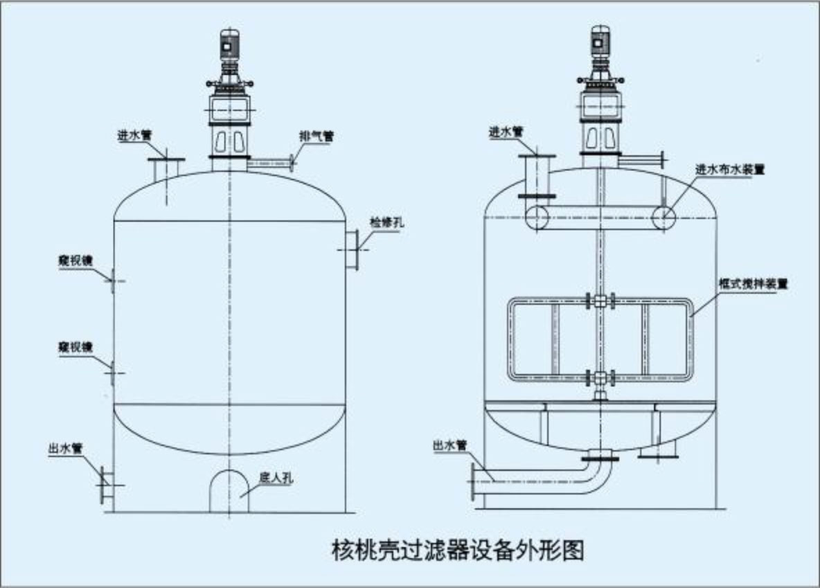 主要用于石化及其它含油污水處理的過濾器,采用有較強吸附能力、化學性質穩定,強度高,耐磨性好的核桃殼作為濾料介質,可采用單級或串聯使用,保證出水水質。