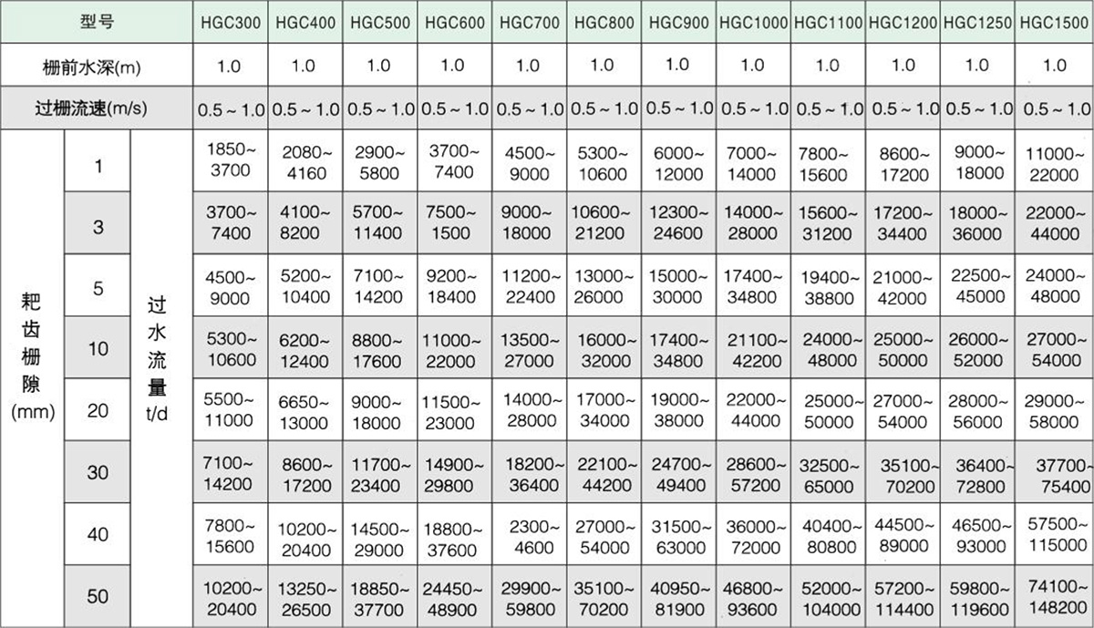 過水流量表(并聯機的過水量按此型號乘2即得)